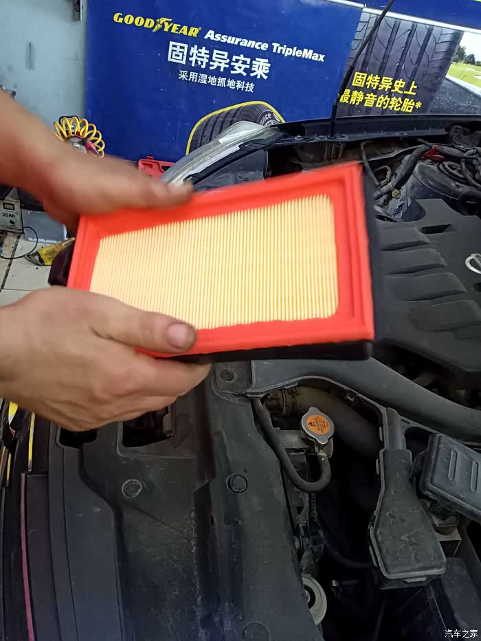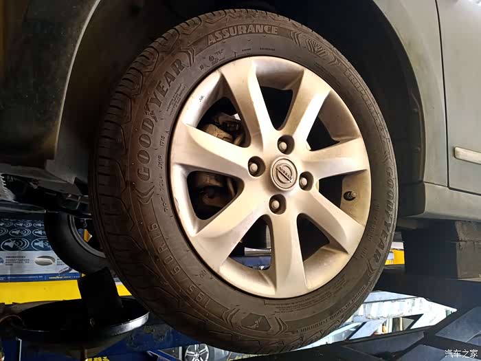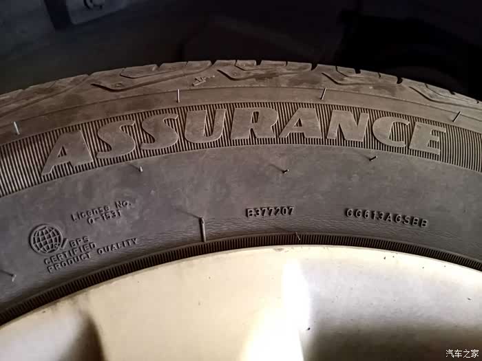 检查一下去年换的固特异轮胎,胖胖的胎体,比较憨厚。