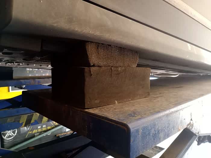 其实小保养就是换机油,机滤,空气滤芯。在这里换机油的方式有点不一样,您看看多了一个斜坡木块,这样能更干净的放干机油。