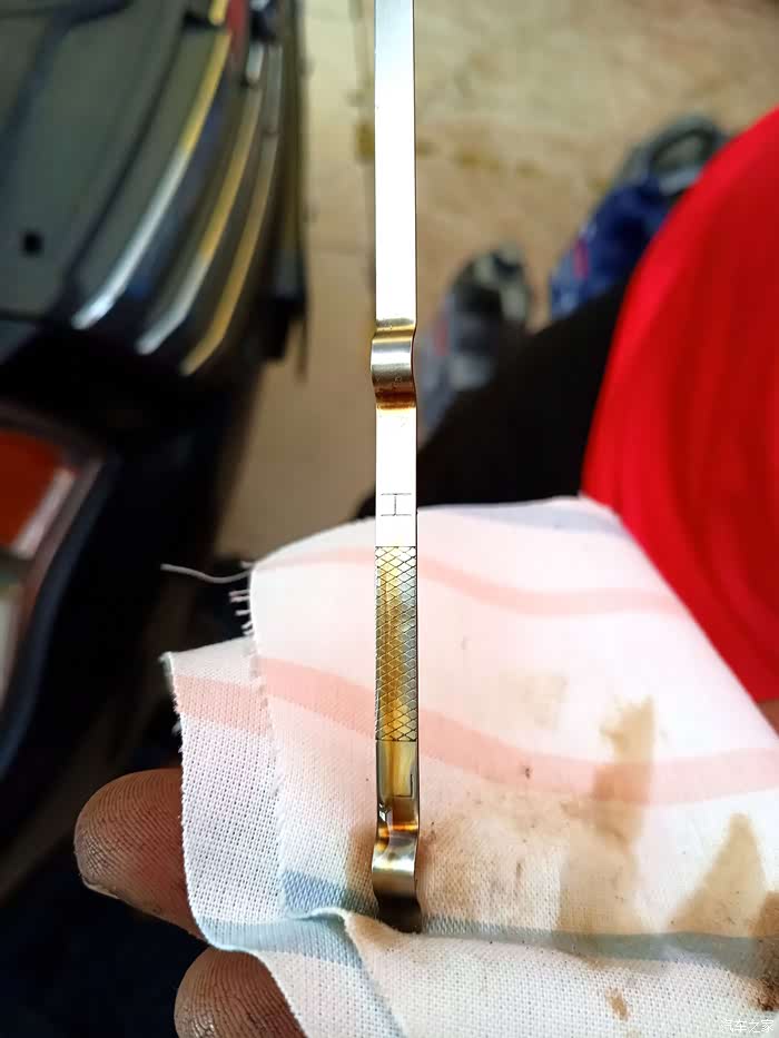 看看机油的位置刚刚到上限和下限之内,佩服修车师傅的技术娴熟。