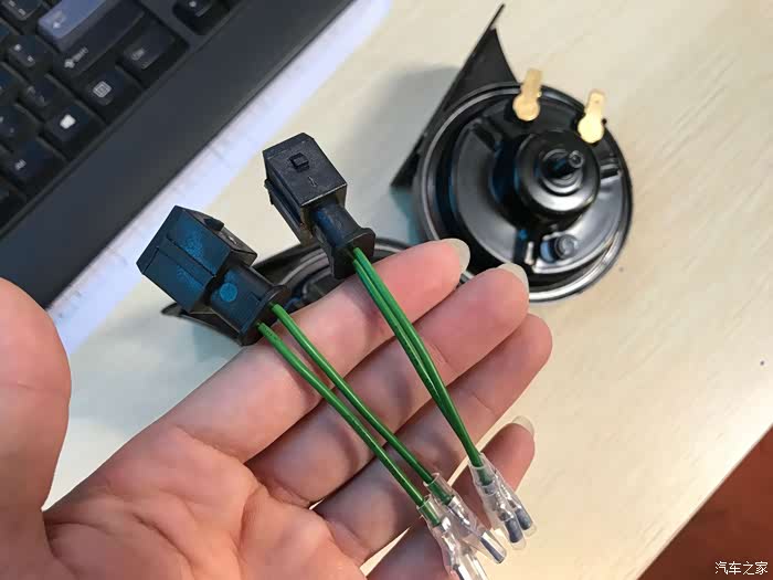 原车喇叭的接线头样子,其实就一个卡扣一样的,很通用的。