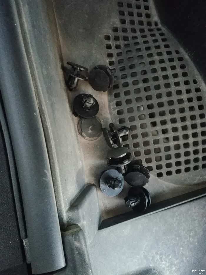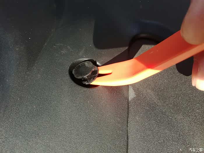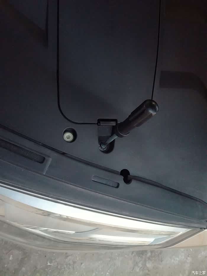 卡扣全部撬完了,开始拆螺丝,需要一把十字螺丝刀,后备箱的工具里面有