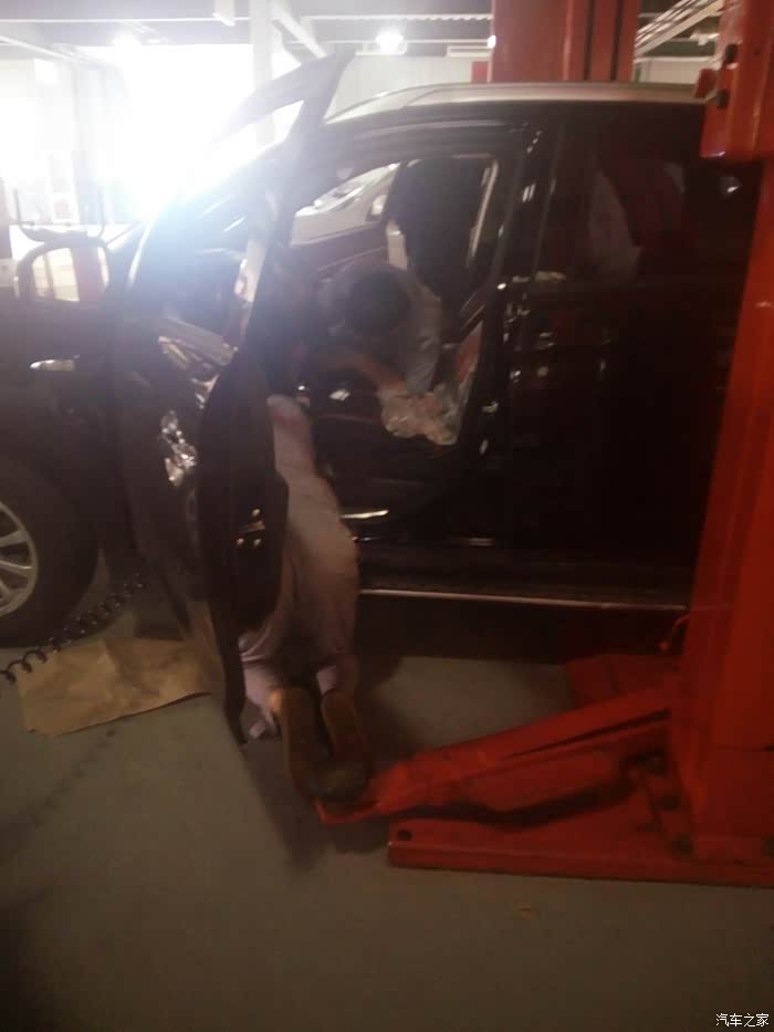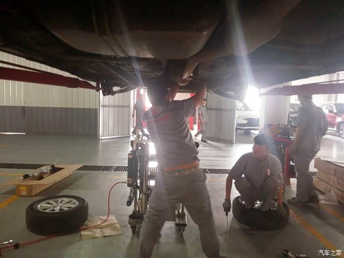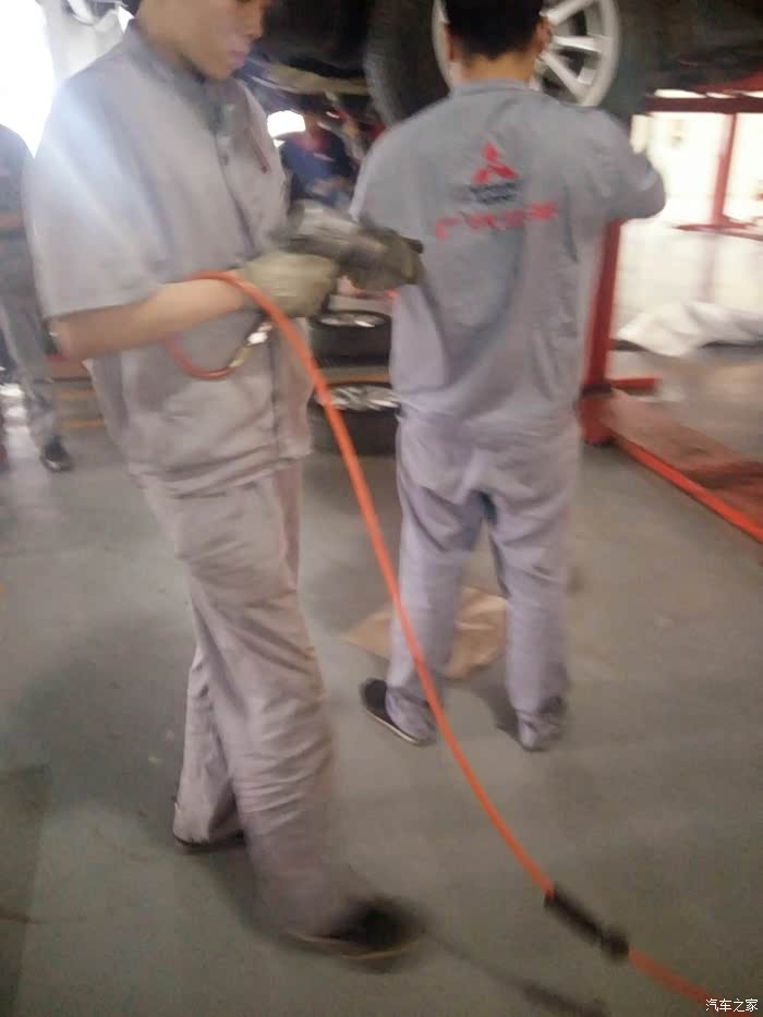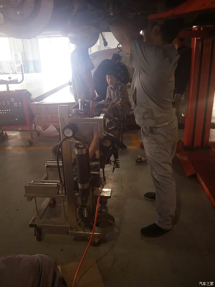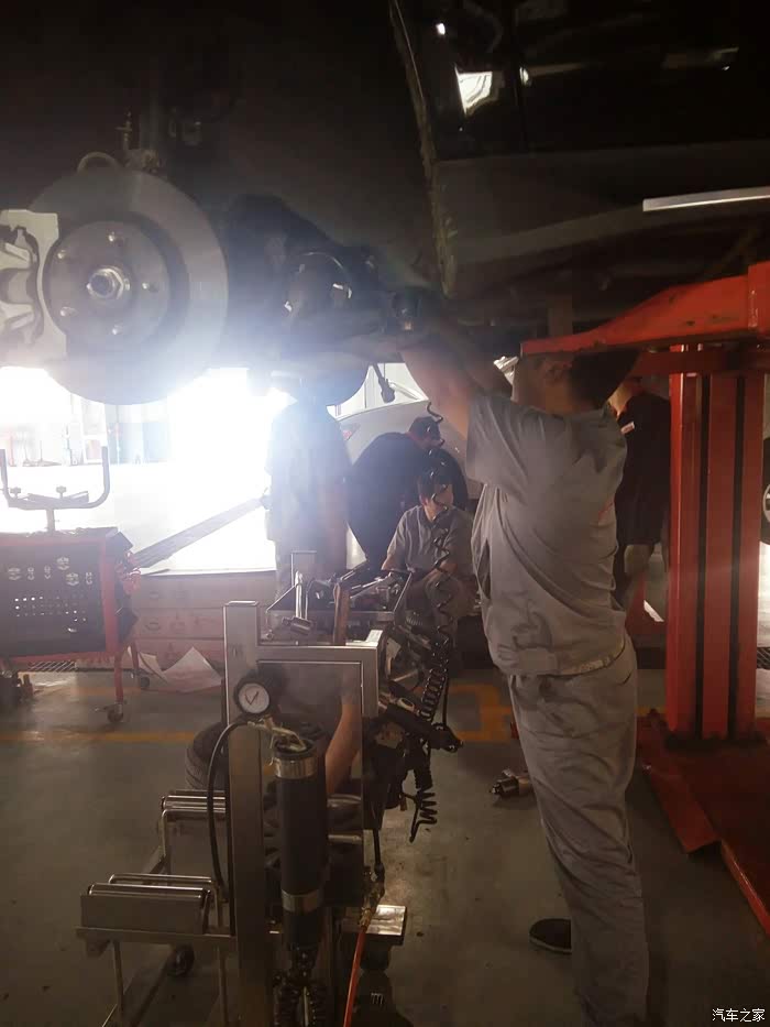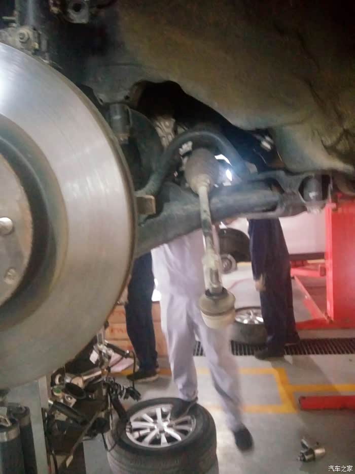 开始拆转向机中间的螺丝了 这个师傅很麻利 边上有一个白色的劲炫 俩位师傅在比谁快 但我感觉还是慢工出细活啊
