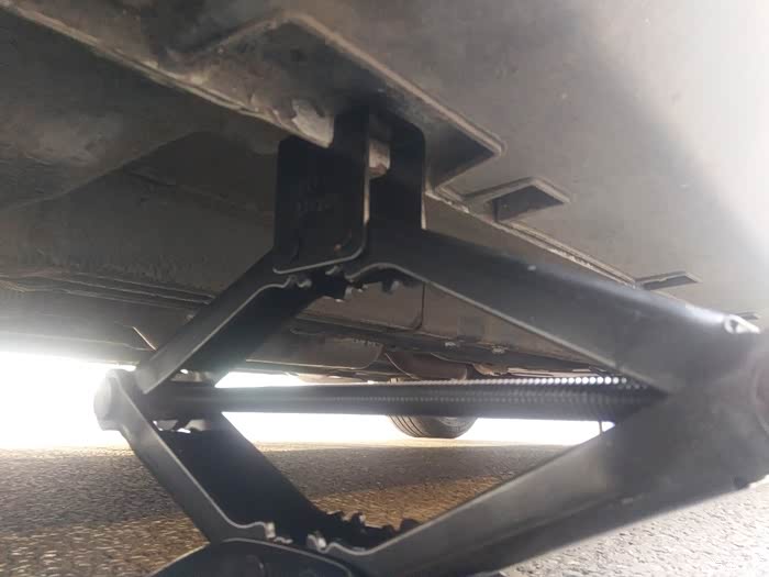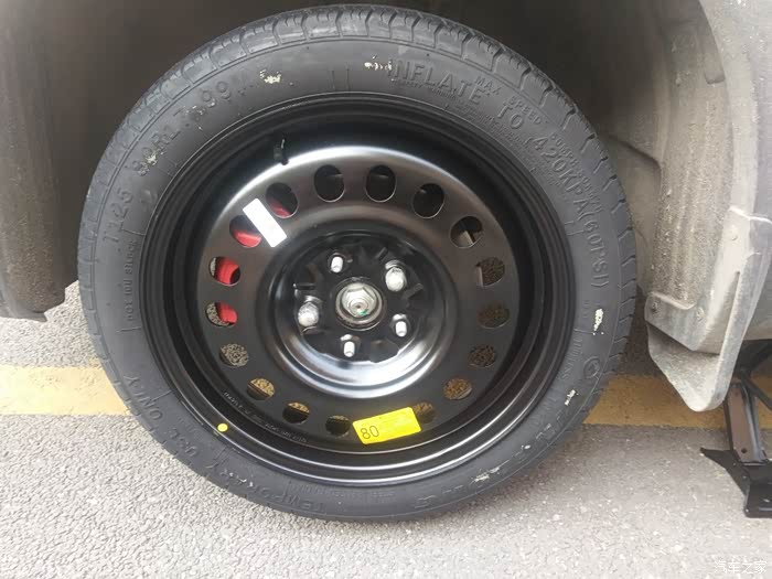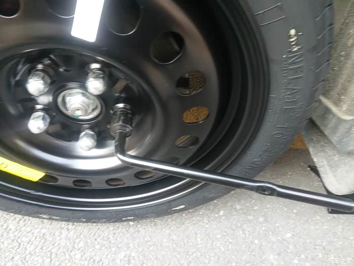 今天早上开车去上班,刚出车库门口就发现仪表指示灯的小叹号亮了,可我竟然忘了这是什么的指示灯了。赶紧找了下度娘才知道是轮胎,自己也真是粗心,车胎没气了都没感觉到。马上把车停到一边,下来看了一下,插了一个钉子应该是昨晚扎上去的,补胎店离得太远还是先把备胎换上吧,这还是第一次用备胎呢。