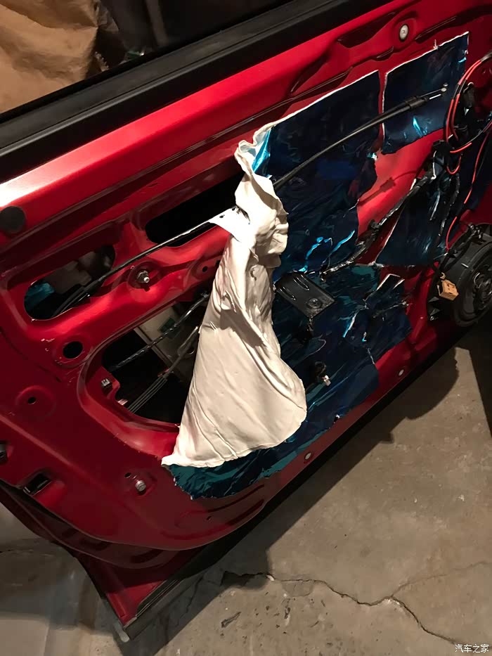 然后开始卸内饰板,这个很简单,我之前自己做过四门隔音,所以卸门板很轻松,主要要把内门把手、储物槽、下面四颗螺丝卸下,门板用塑料板翘起就可以拿出来,奇瑞的卡子质量不错,我卸了几次都没有坏!