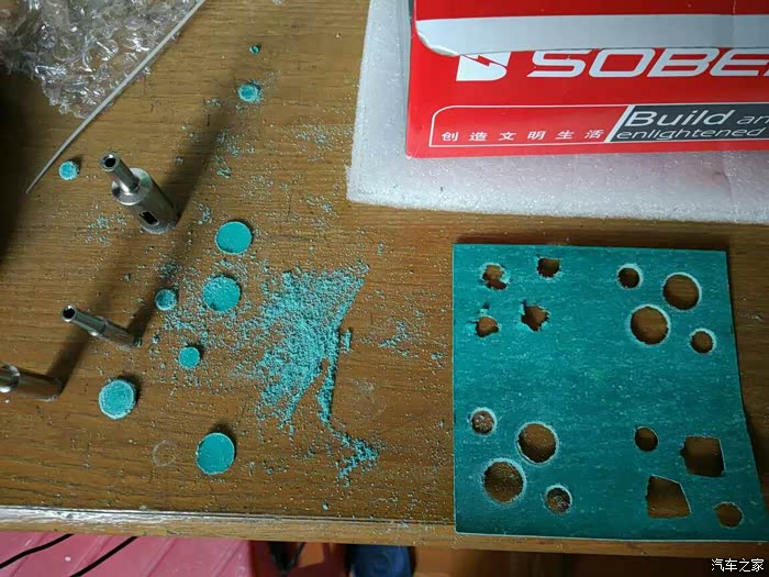 动手加工,没用小功率手电钻,所以手工搞,尝试方法搞坏了两片