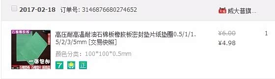 装回原车的EGR用了个多月,空闲时候就会想用什么方法能把替代品装上去,车友的砂纸打磨法可能能解决,但只是可能,我一直是想找垫片,TB找了多款车的垫片都没找到适合的,最后灵机一动,找耐高温垫片自己加工,万能的TB找到了这货
