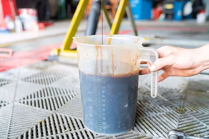 可以明显看到放出来的机油已经变色,说明确实到了需要更换的时候了。