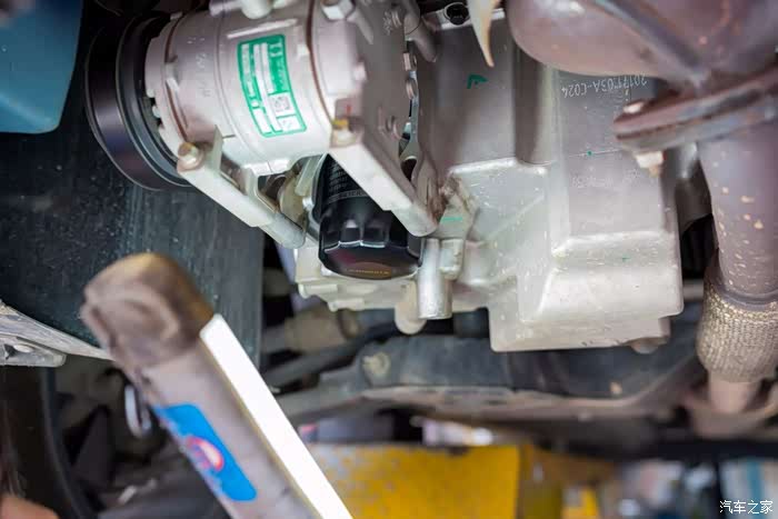 接下来是机滤,别以为机油以及放空了,打开机滤的时候还是会有一些残油出来,所以接好。