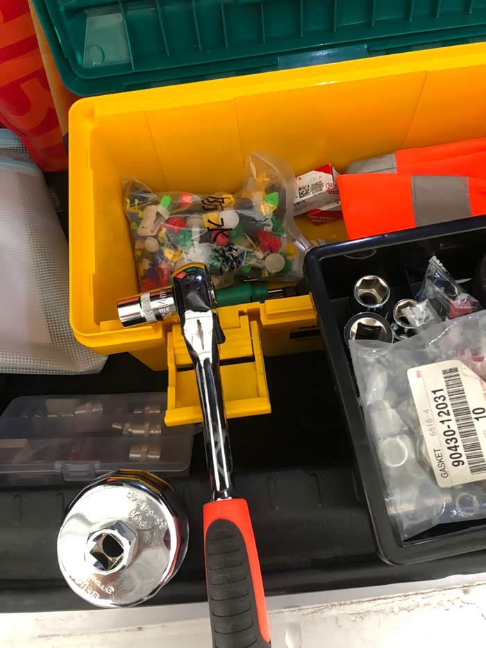 准备工具,一个大飞带14套筒,还有一个机油滤芯盖