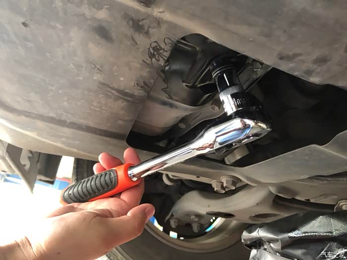 好,把放油螺丝扭回来,用手扭回来扭到手指扭不动为止,然后,大飞吃点力就ok,不要太紧,没用的。