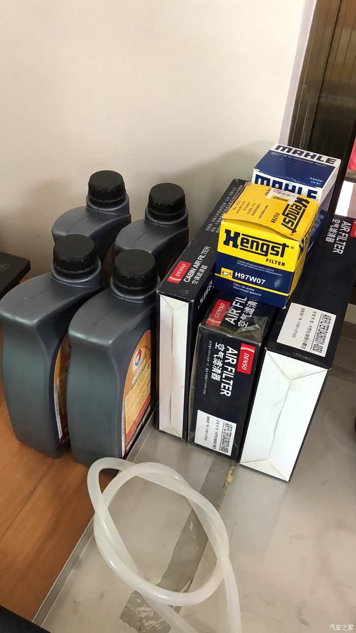 上新机油滤也没拍照片,自己一个人,手脏不好拍,下次补拍。机油滤清器安装之前,要先往里面灌注新机油,橡胶垫也要抹点油。