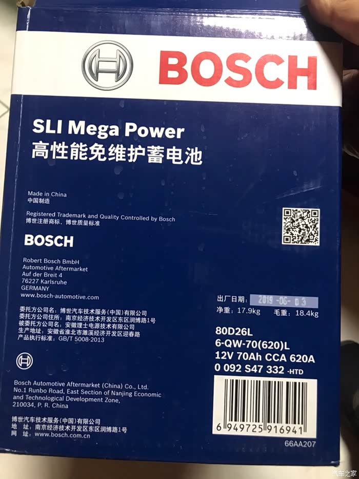 这是我换了大号的博士电瓶,把旧电瓶给他,新电瓶给我,然后他收了我380块钱,电瓶质保18个月,这个电瓶真的不错,比之前换的那块小电瓶强太多了,由于电瓶大了,启动非常好启动,轻松,没有之前小电瓶那种着车时的费劲了,满意!