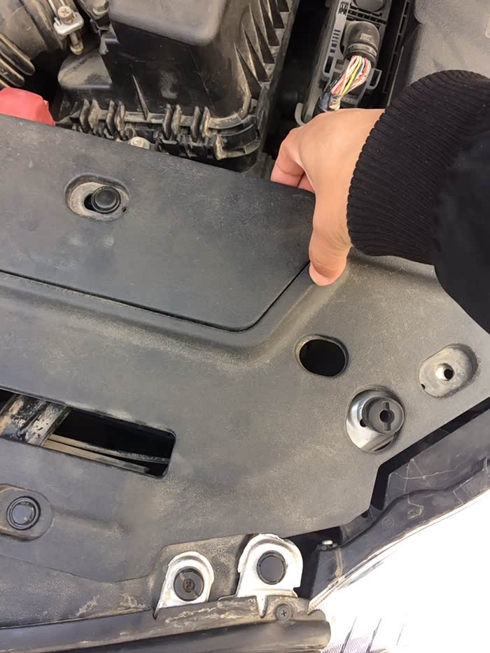 去掉这几个塑料扣,这个长护板用手一拿,就拿掉了