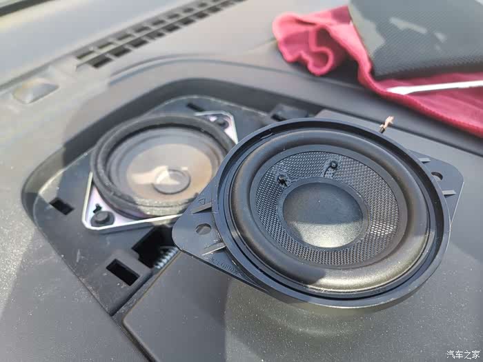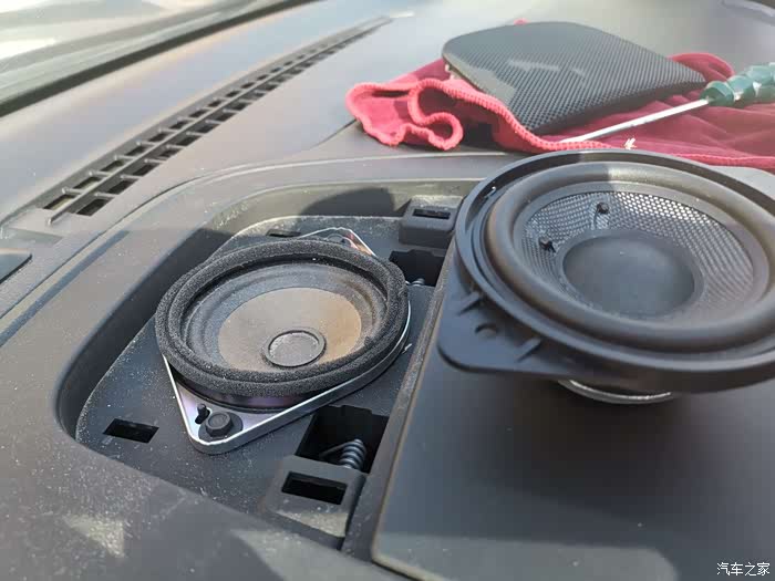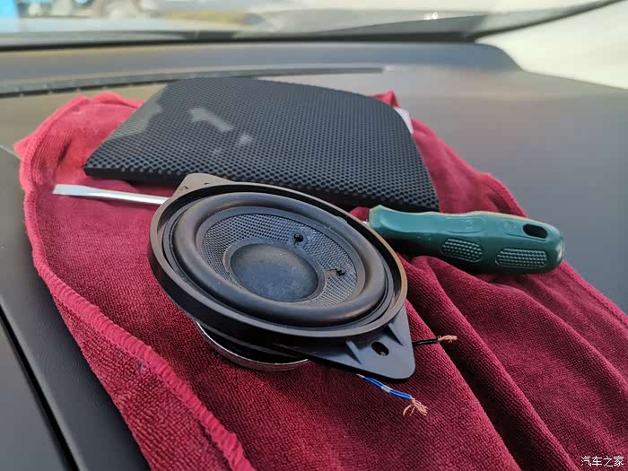 接下来就来到另一家店搞中置喇叭,之前已经把锐界四门做隔音止震后,安装了芬兰的四高四低喇叭,品牌就不说了,音质有了很大改善,非常满意,原车机头功率非常大,推新喇叭毫无问题,甚至绰绰有余,如果改中控的小伙伴就不知道什么情况了。上次改音响因为手懒没上作业,中置喇叭没有换,音响听了一段时间总感觉少了点什么,中置喇叭没改总是心痒痒,于是闲鱼了一个奥迪bo的中置喇叭,上图看看,还不错吧。