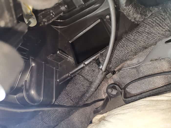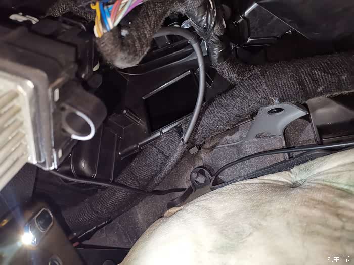 拆下底盖,保温隔音棉已经被我之前喷的泡沫侵蚀发霉,我之前的作业还以为是蒸发箱上的棉,想想也真够无知的,惭愧,我拆下用清洗泡沫刷了一下,回归白白,忘记拍照片了。