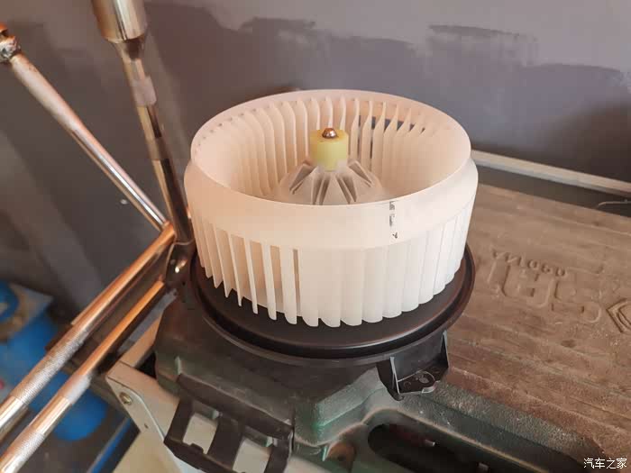 拆下的风机,被之前我自己用的泡沫清洗喷完后,残留的液体还在,幸好没有烧掉风机,上次喷泡沫风机加电后嗡嗡转不起来,吓得我够呛,后来等了一会才起来,可真的不能用泡沫直接往风机上喷这样的方法了,这个风机坏了换下来一千往上的价格。