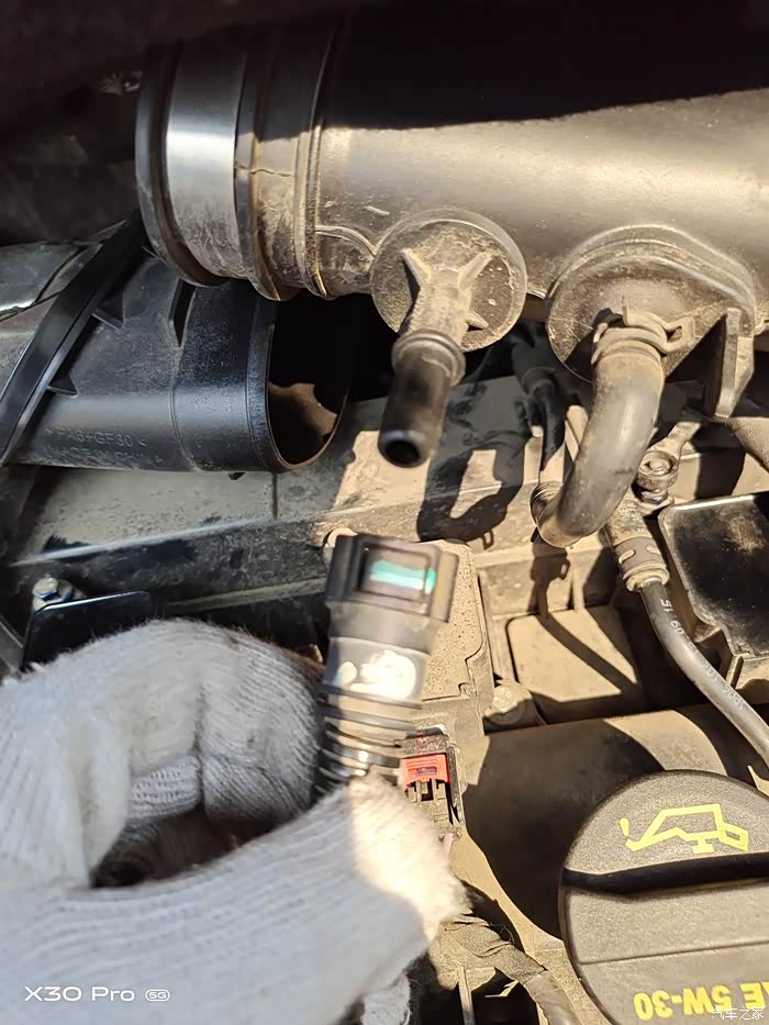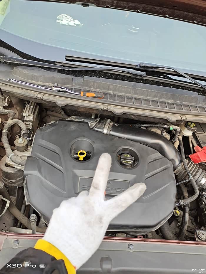 打开盖子,有点脏,,,哈哈哈终究快4年的车啦。