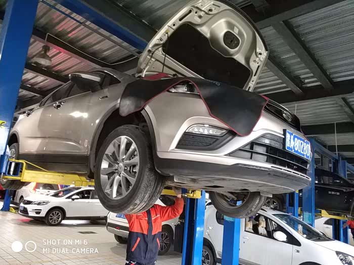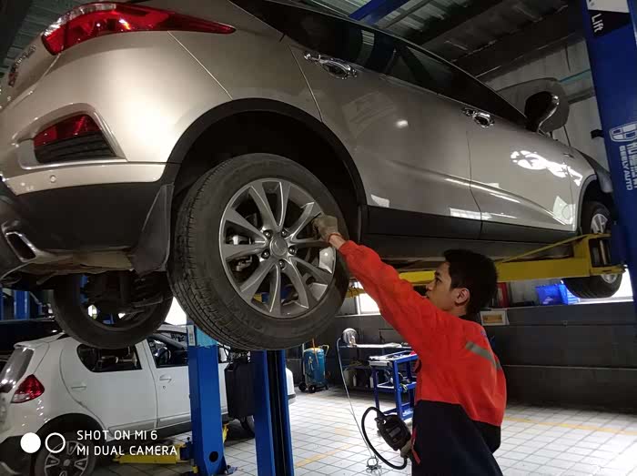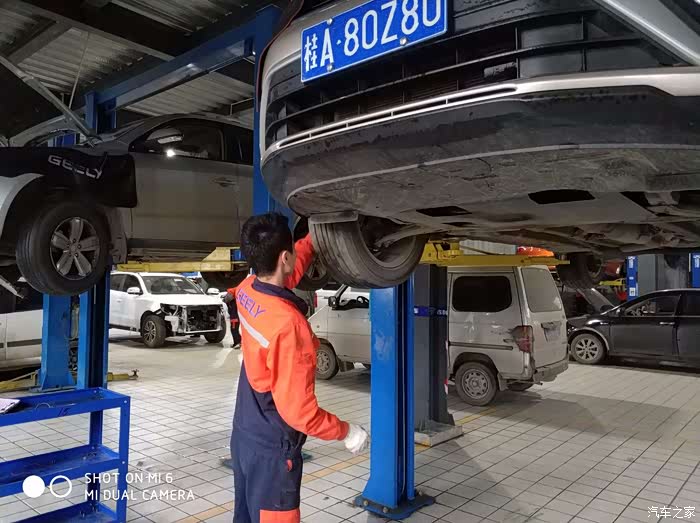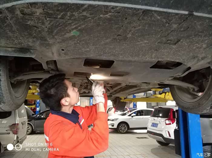 检查完外表,登记好,就要上架子检查底盘了。我不放心也全程参与了检查过程,确保安全无误。