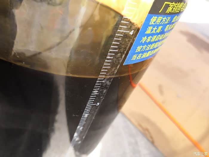 抽了七八分钟左右,这是脏机油的容量,(他这个容量刻度有点偏差)看了一眼觉得差不多了,抽油管出的脏机油很少了,就关闭抽油泵
