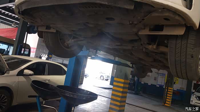 车被举升机升起来了,准备放油