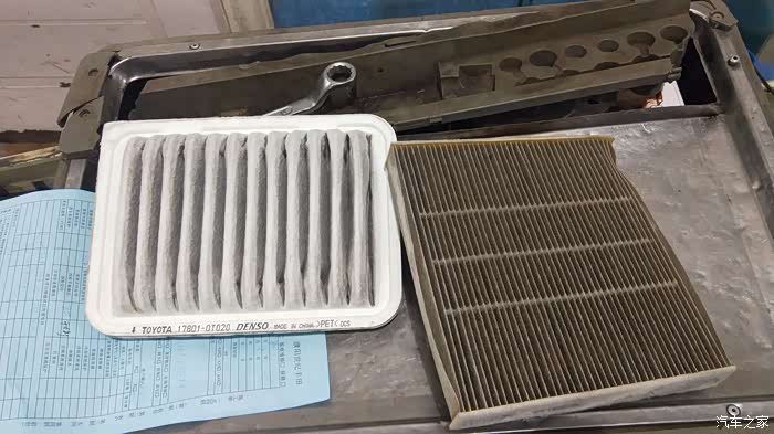 拆下来的空气滤芯,和空调滤芯