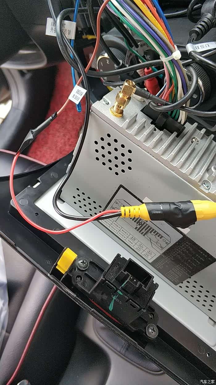 然后根据上面总的那张接线图,接好gps天线,螺纹的,拧上,插好收音机天线。原来导航上的usb接口不一样,换掉,线从手套箱里穿过去,插好就好了,会换空滤的应该都会拆手套箱。这样就大功告成了。