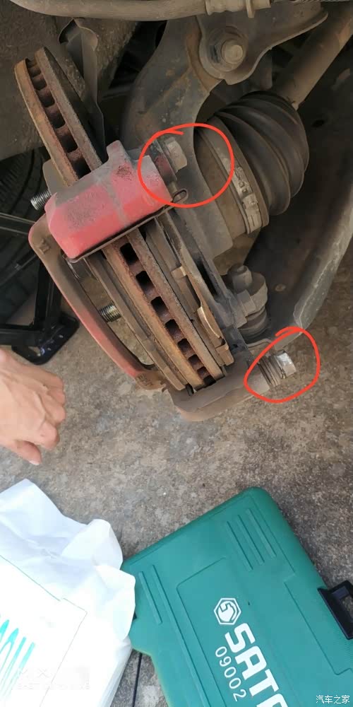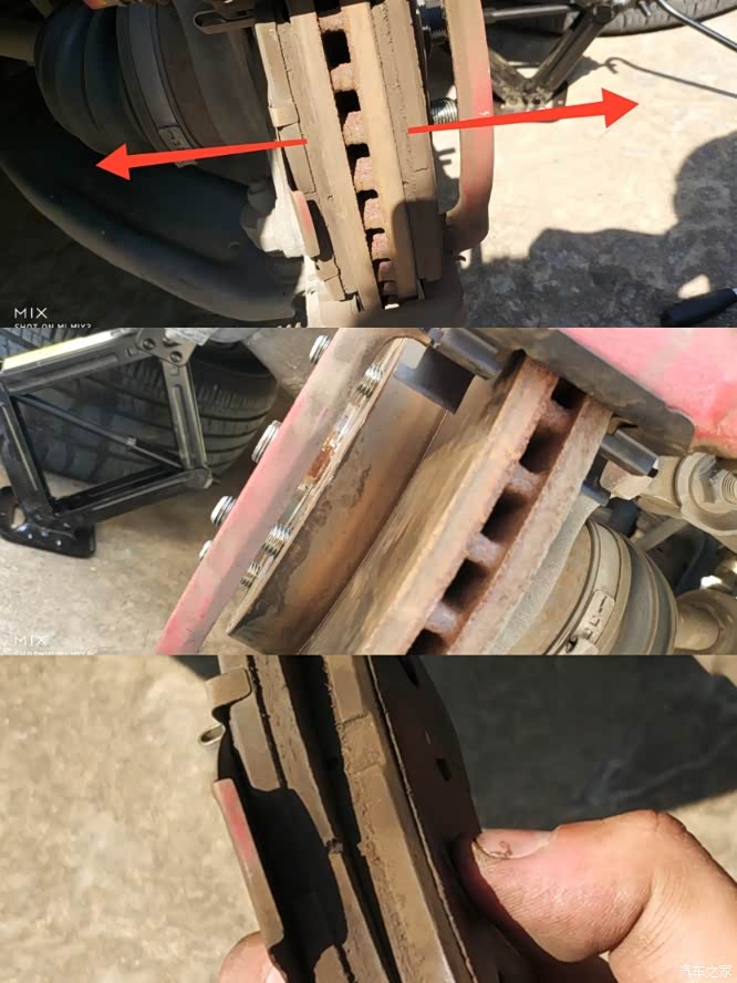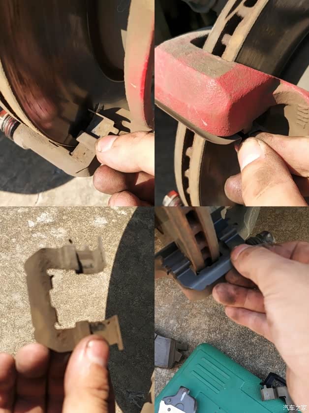 往两边拆下旧的刹车片(其实旧刹车片还有6毫米左右的厚度,开个七八千公里没事)