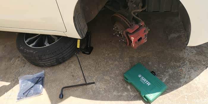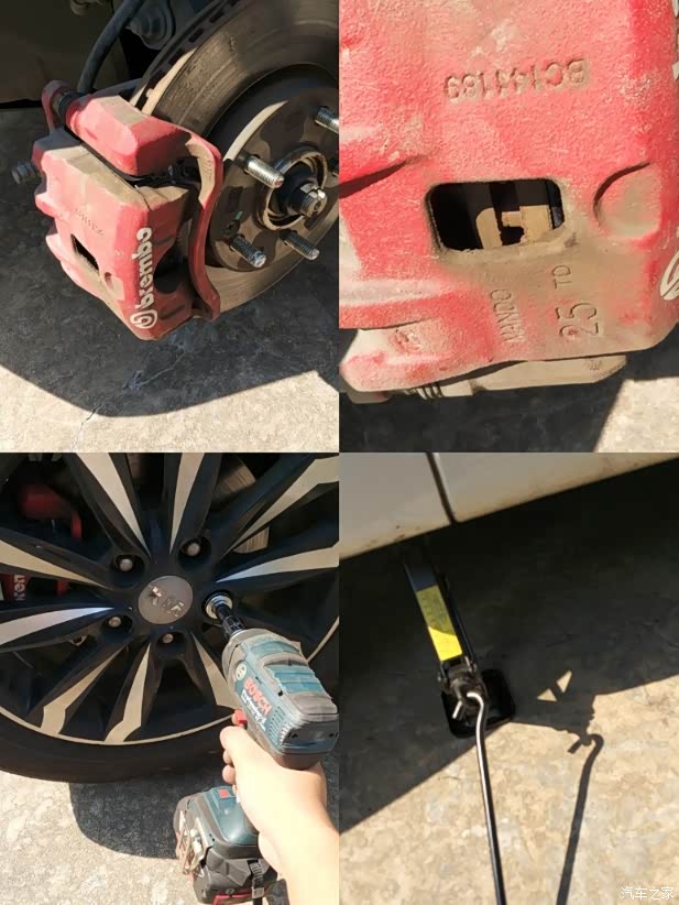 装上轮胎、降下千斤顶…上车踩几脚刹车…OK …完美…… 其余几个轮子也是一样的…