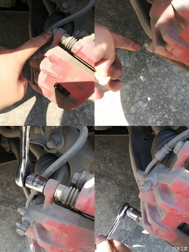 用14的套筒拆下后面两颗固定刹车分泵的导销螺栓…