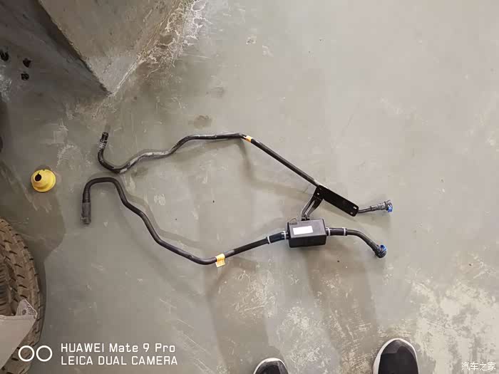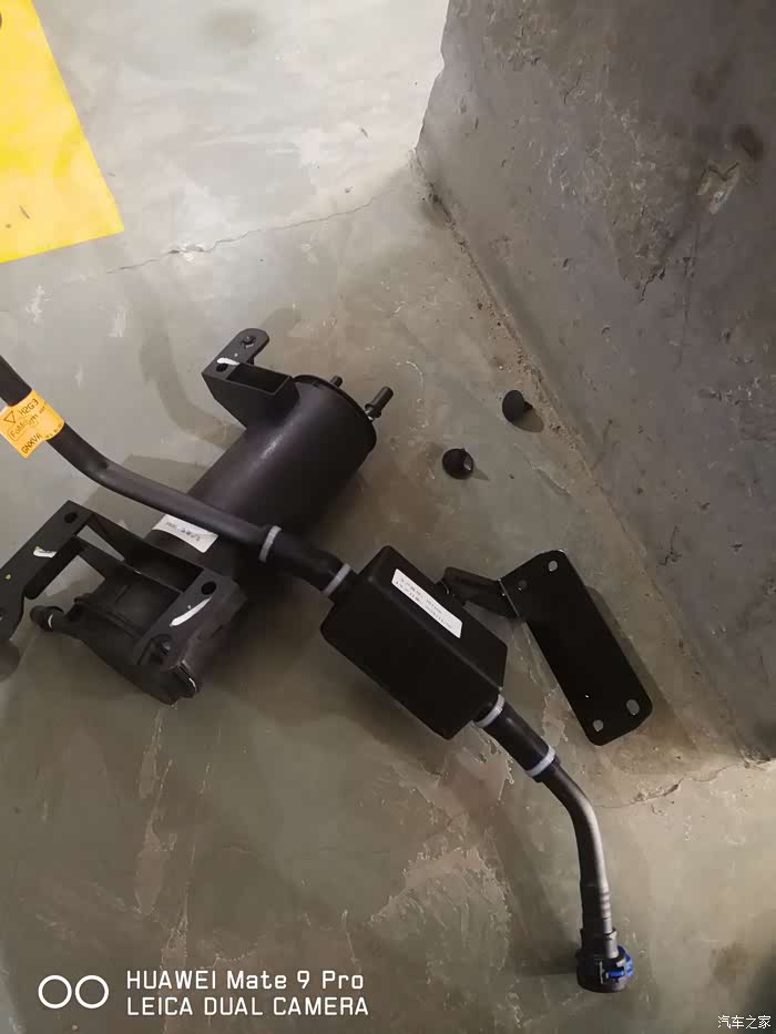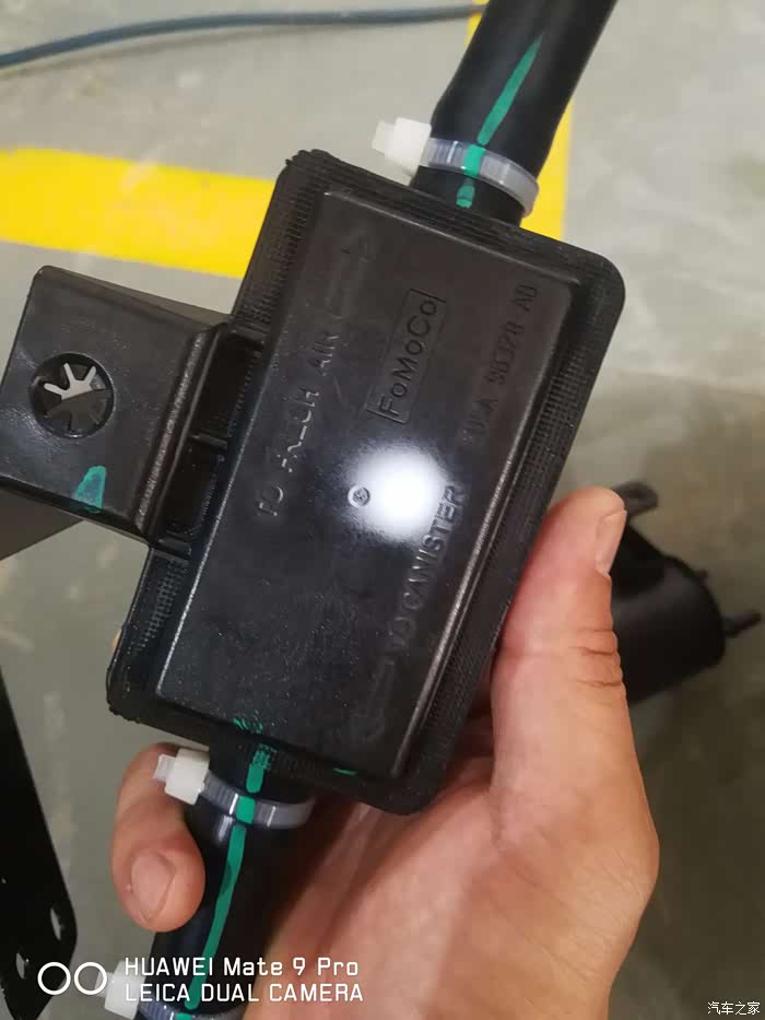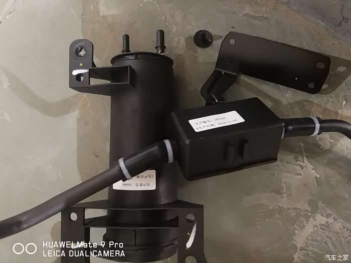 拿配件,新的过滤盒和碳罐,改良了就是加个过滤盒,还有两个固定卡