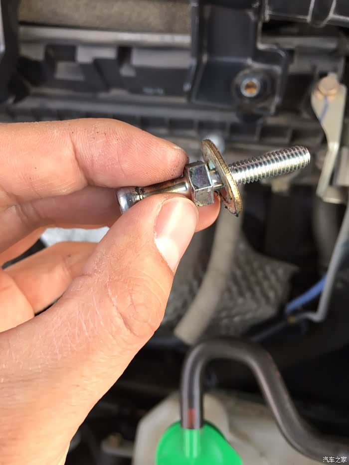 拆掉这两颗用于固定发动机护罩的螺丝,注意,这俩螺丝由于长度问题,普通套筒工具完全无法用,只能用小扳手了。
