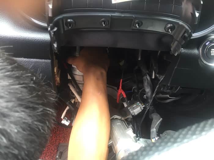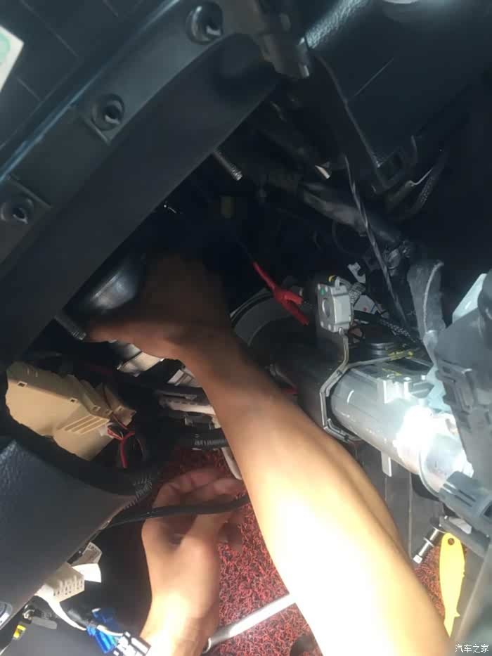 拆卸过程,拆下方向盘下面护板就行了,这样基本能操作了,有几颗螺丝固定方向机。