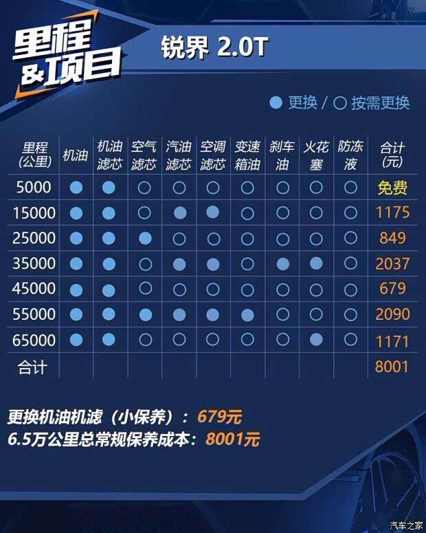 二保换了机油机滤,多加了燃油滤清,总价原价640,购车时送了100优惠券,最终540(购买了终身保养套餐,机油机滤免材料费)。二保没啥特别的,也没怎么拍照片。不知道保养周期及保养内容的,送上之家神图2张。