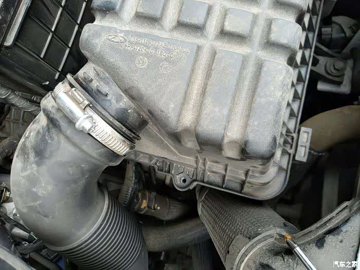 再把抱箍拧松,空气滤芯盖板就能拿下来了