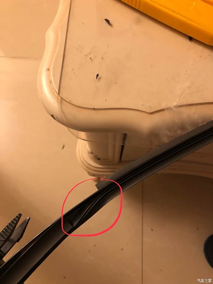 图13:这是雨刮胶条完全装好到骨架上,可以看到这一侧去掉了不少橡胶,但只要和玻璃接触那侧没动,实践证明不影响使用效果。