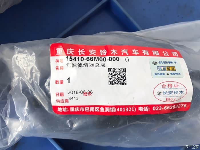 在马老师家买的汽油滤清器,9.28万公里大保健时换过,已经跑了6万公里了,该换了。