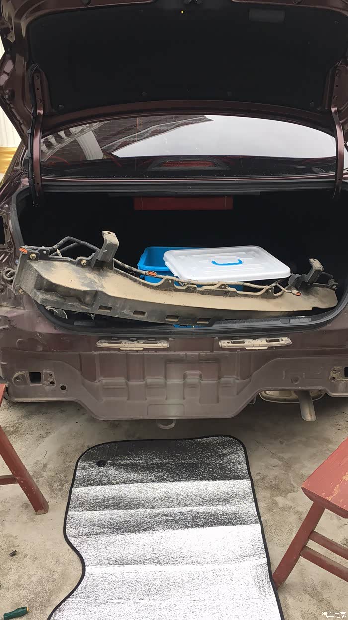 拆后保险杠先要拆下后尾灯,有两个螺丝在尾灯下面