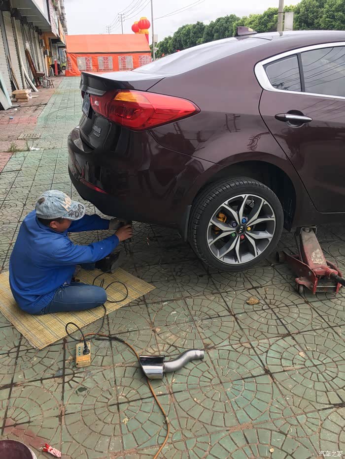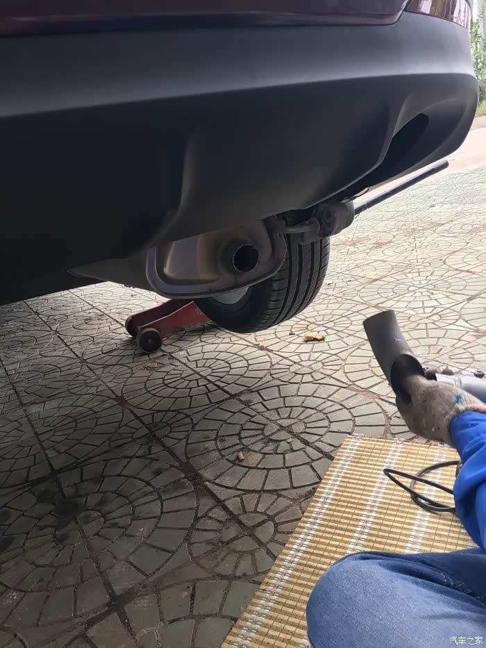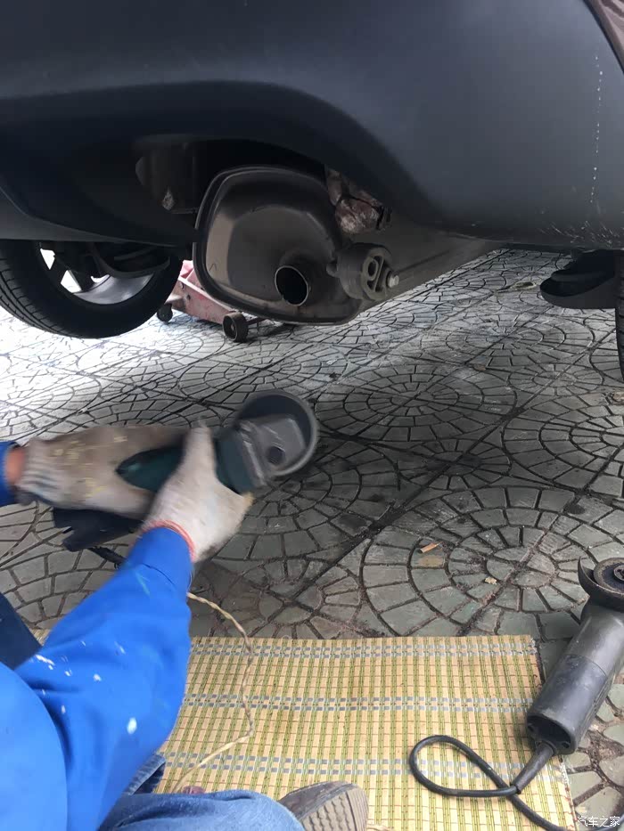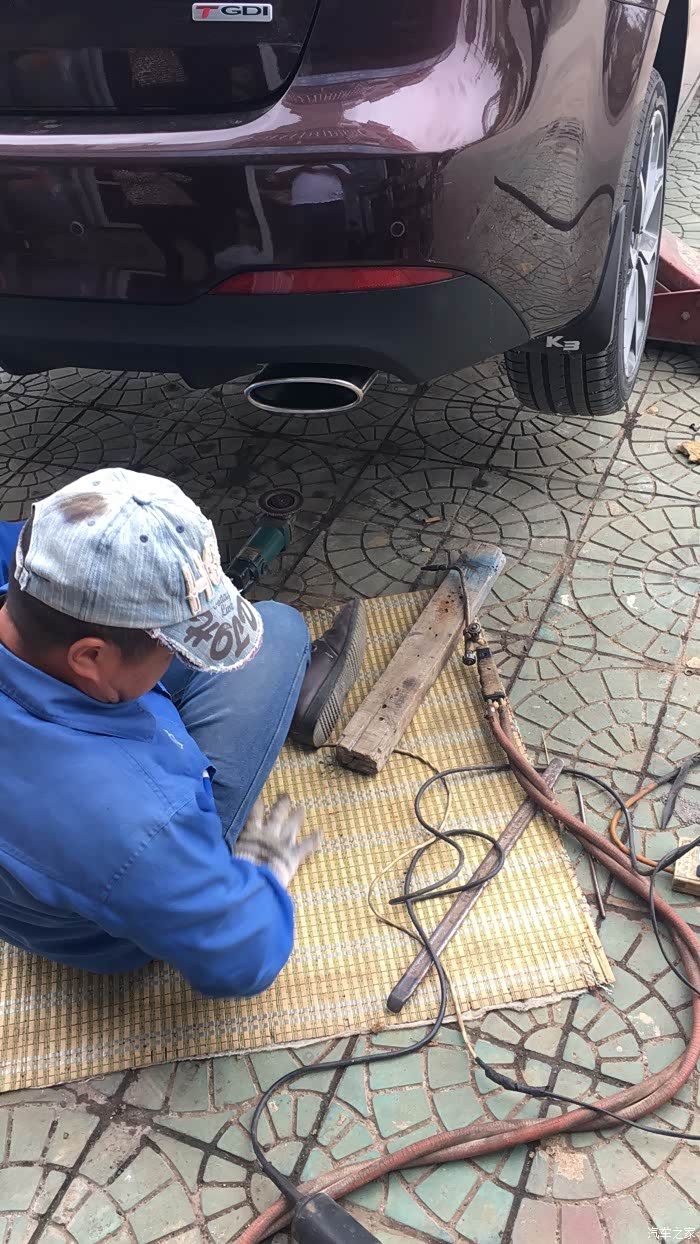 按照之前步骤装好保险杠,就差焊接尾喉了由于没有焊接设备所以直接去外面找人焊接,切割尾喉加焊接给了40块钱,