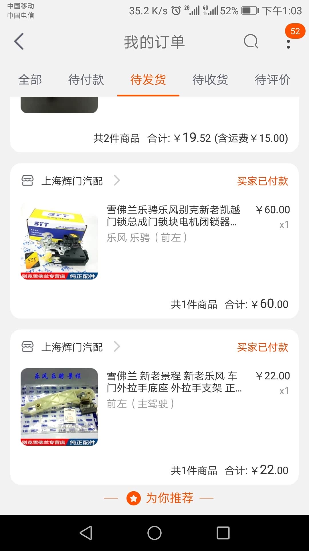 本次花费,中控锁模块60元.拉手底座22元.小地方拿快递2元,手工费50元,合计134元。