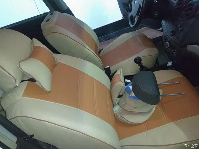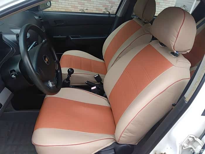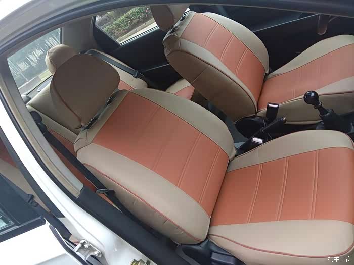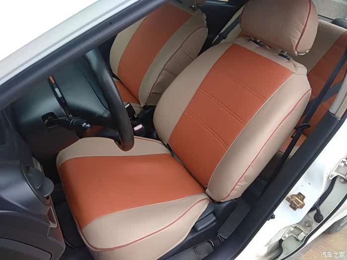 这是更换前的内饰座套,座套颜色走的是橙色风格,请注意,屁股坐垫那块已经花了。