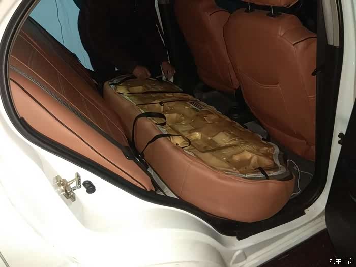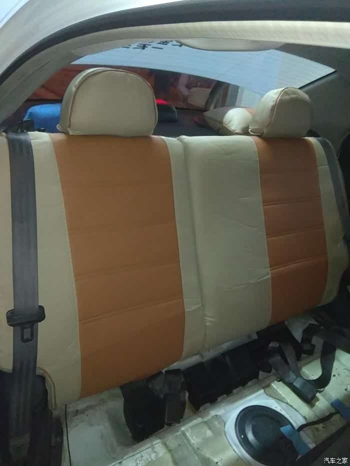 由于西瓜的动手能力不强,所以这个更换座套的事情,还得请美容店老板代劳,这是后排坐垫已经被拆下了。