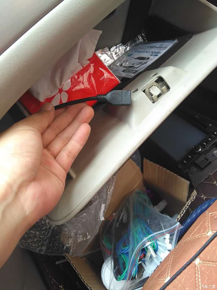 U盘插口引到杂物箱