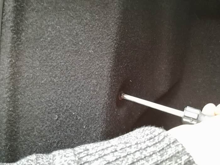 打开后尾箱,上面有两个螺丝,螺丝刀可以用随车工具,这是第一个螺丝