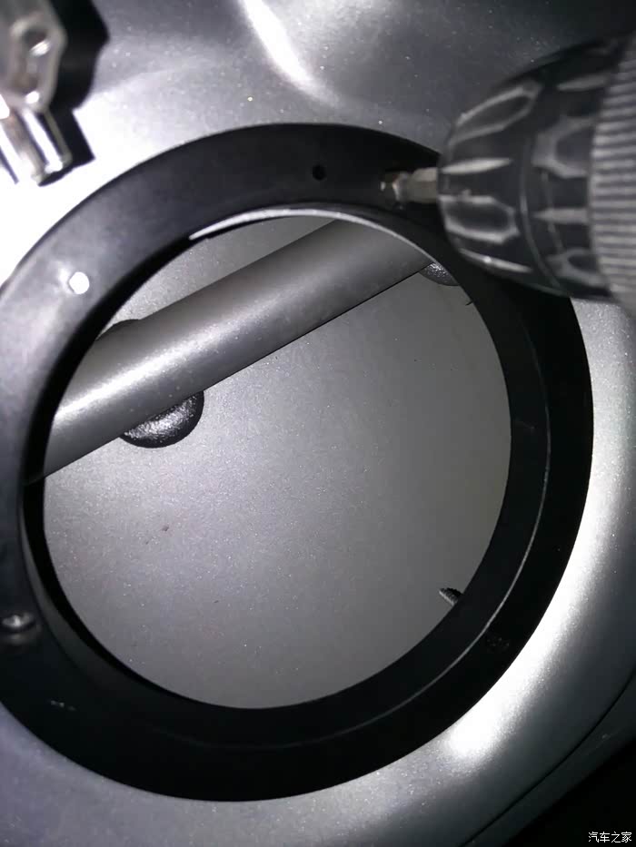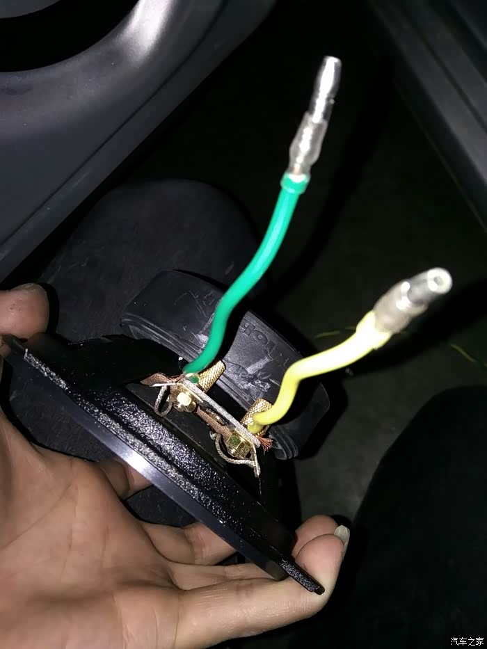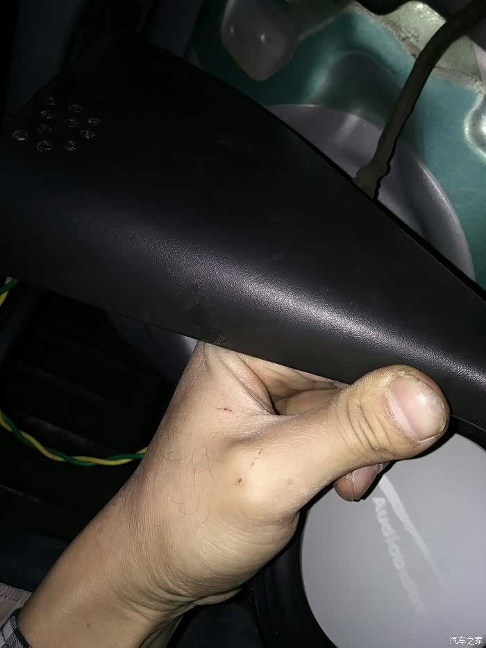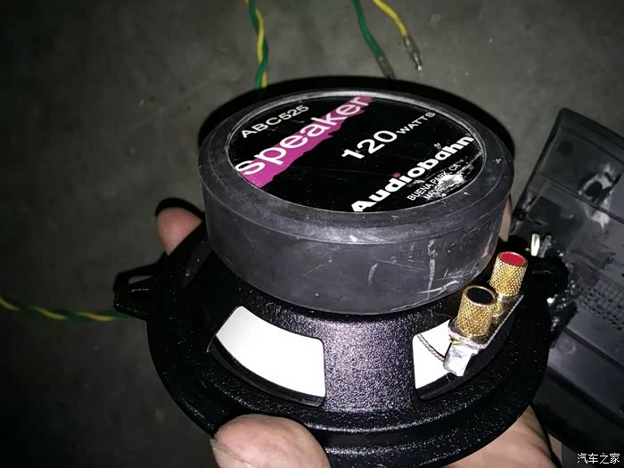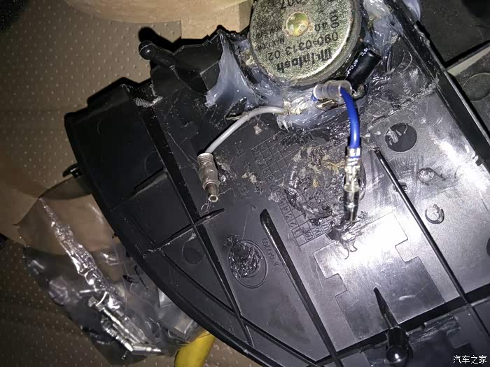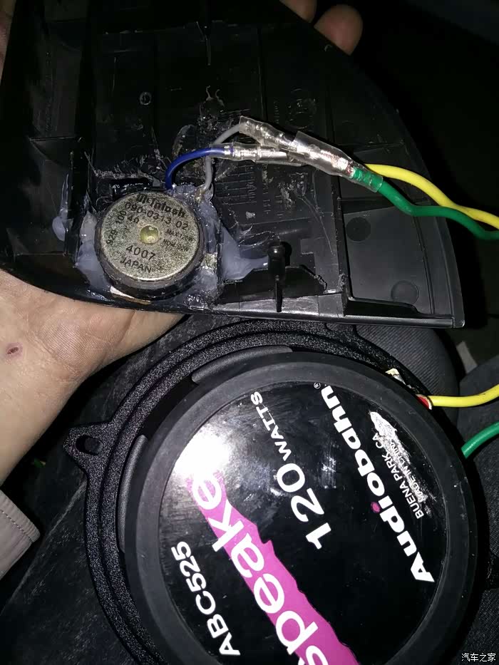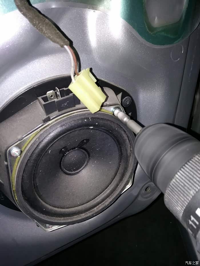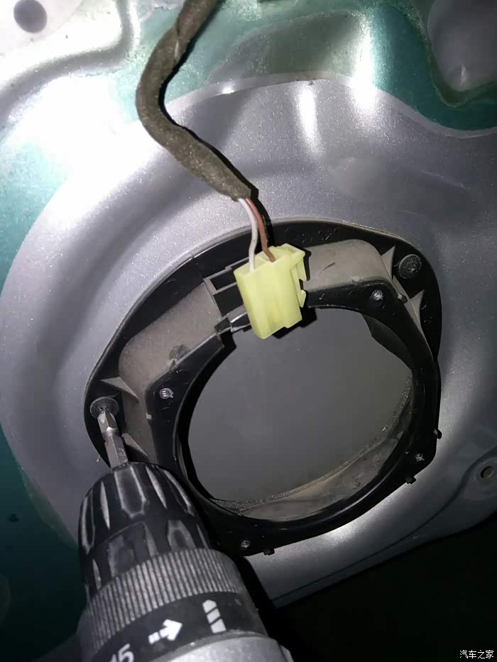 高音喇叭是装在三角板上的 正面用钻头打洞 这个是右边的 左边的也是这样的