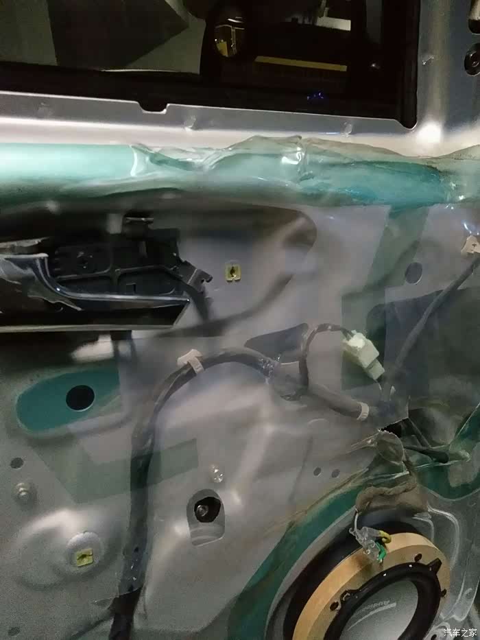把窗户开关插头插上试一下窗户升降有没有地方碍事, 没地方碍事直接安装门板 买的隔音棉没到 忽略塑料膜