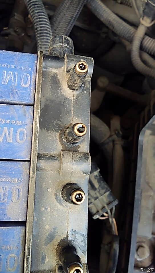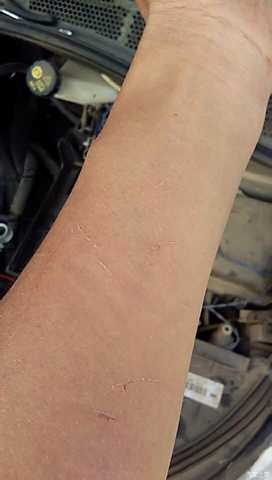 喷射管上有卡子固定,需要一个一个的拿下来,左手从左边伸里去,右手摸索着拆卡子,卡子回弹的力量非常大,加上空间狭窄又看不到,着实的费劲,左胳膊被正时皮带的外壳虐得那是体无完肤啊!