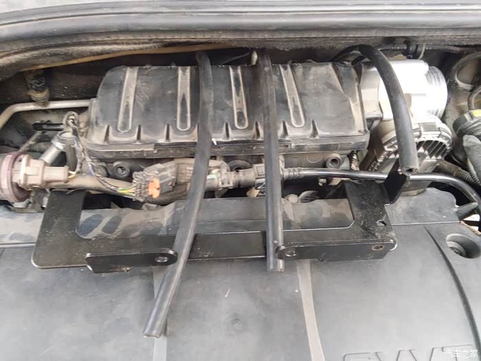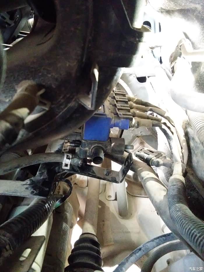 但是这款车型的喷轨是安装在发动机后面进气支管后面的,拆卸非常的不方便,况且我们当地的4S店已经半死不活了,听车友说在4S店保养一下喷轨要好几百!我看看还是自己动手试试吧,顺便把喷轨移植到上面去,去4S店买个喷轨吧,居然没有,我去!连配件都没有,看来是真的离倒闭不远了,没办法,只好求助群里沧州的车友,让他们给买一个吧!等了将近20天吧,喷轨支架到货
