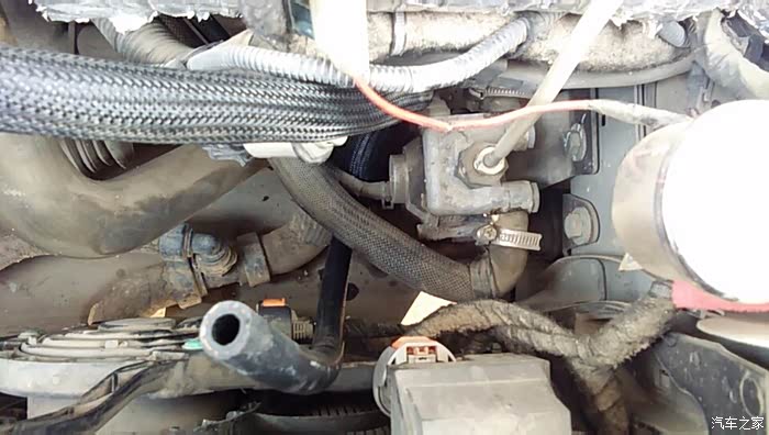 喷轨和线束整理好了以后,问题又来了,因为改变了位置,从减压阀出来的气管够不到了,只能更换新的气管了!具体的是,把喷轨的线束从原车大线剥离出来,也就是几个一拉得的事儿,让线束顺着防火墙走到节气门的位置,放心长度刚刚好!原来气管是从空滤盒子下面走到进气支管那里的,这次需要从新修改一下,让它从空滤盒子前面走到发动机舱上面来!但是距离改变了,旧的气管就明显不够长了