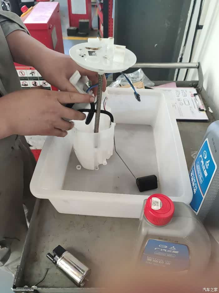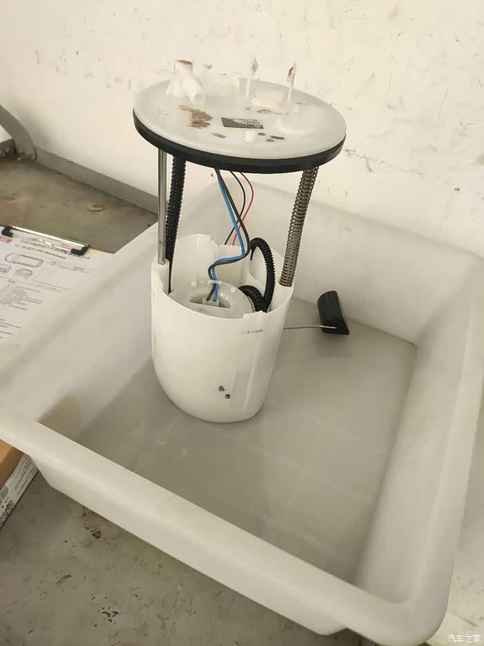 看,已经找到了燃油泵了,在油箱里面。他的作用就是给发动机输送油。