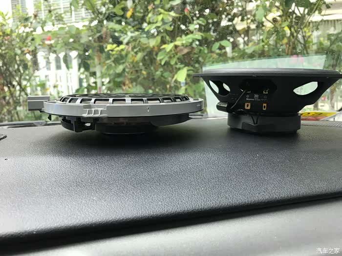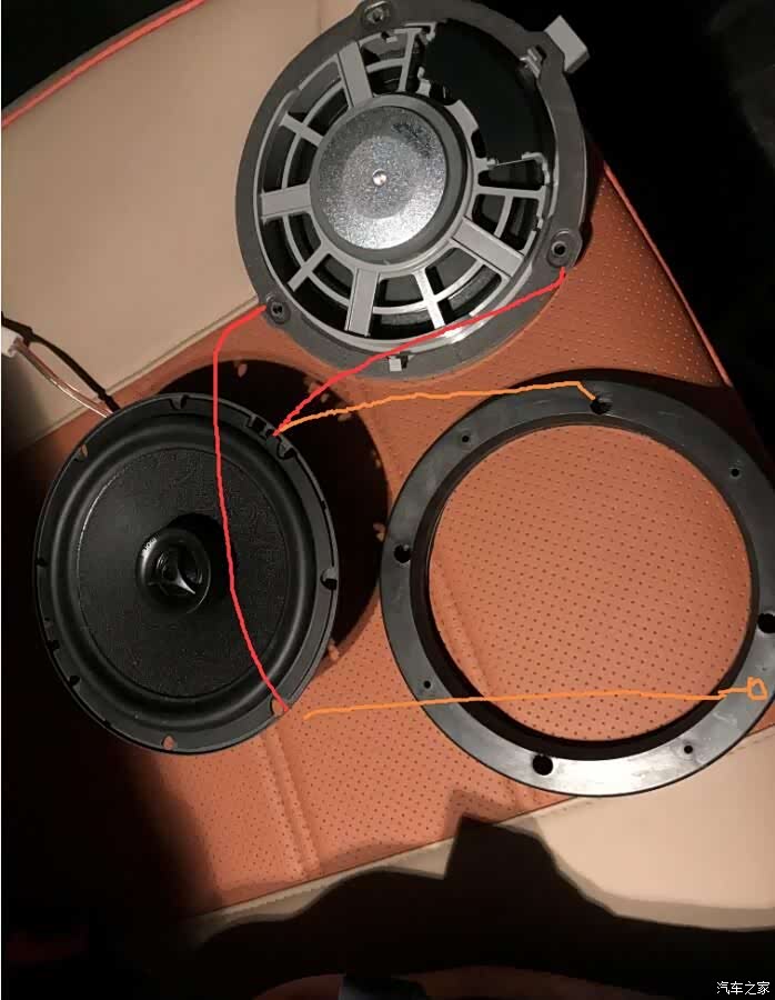 圈垫要开孔,找到音响上刚好凑齐原车孔位两个的位置。